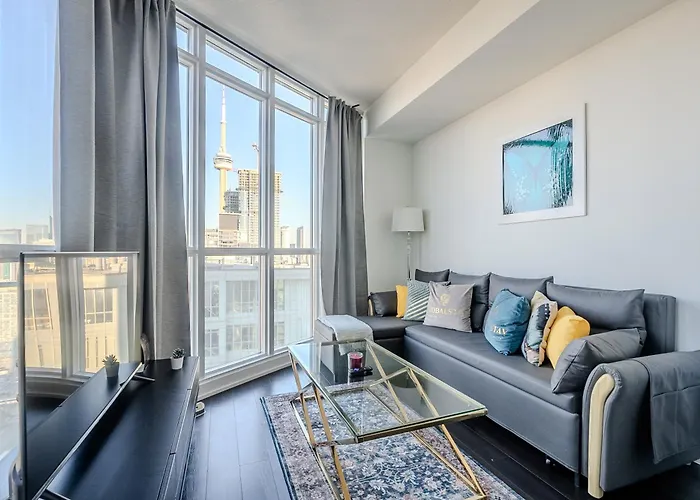 This spacious apartment lies right in the centre of Toronto, within easy reach of the Fort York National Historic Site. The large Art Gallery of Ontario is around 10 minutes by car from 48Th Floor Cn Tower View 1 Bedroom Condo Iceboat Terrace Downtown Toronto, while Fleet Street bus station is only 10 minutes' walk from the property. 2.4 km from this apartment you will find Yonge-Dundas Public Square.